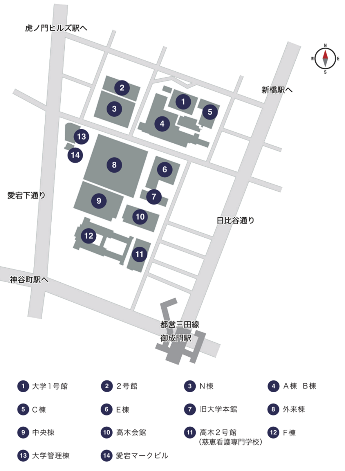 会場案内・アクセス 会場 東京慈恵会医科大学 大学1号館 3F講堂 〒105-8461 東京都港区西新橋3-25-8 https://www.jikei.ac.jp/access/nishi-shimbashi/ アクセスマップ 建物配置図 建物配置図(PDF)